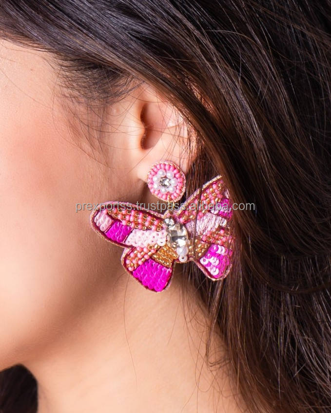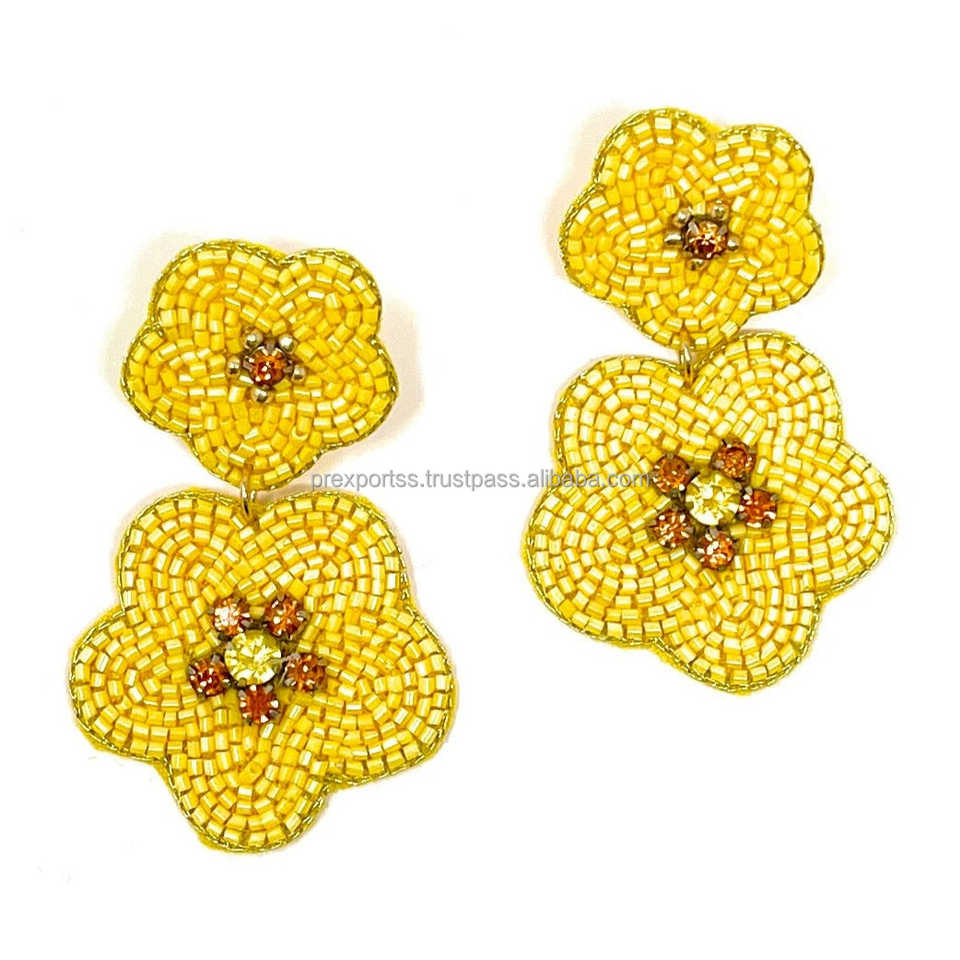 ต่างหูแบบโบฮีเมียนปักลายดอกไม้หลากสีทำมือสำหรับผู้หญิงทำจากอินเดียสำหรับเด็กผู้หญิง