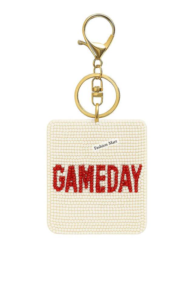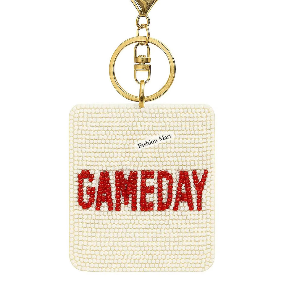 พวงกุญแจ Gameday ลูกปัดทำด้วยมือแบบกำหนดเองตัวอักษรสีแดงบนพื้นหลังสีขาวพร้อมตะขอทองอุปกรณ์เสริมสำหรับกีฬาและเป็นของขวัญ