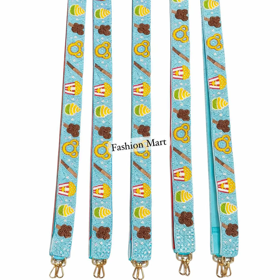 สายกระเป๋าถือทำมือประดับลูกปัดลายไอศกรีมป๊อปคอร์นน่ารัก พร้อมตะขอทอง