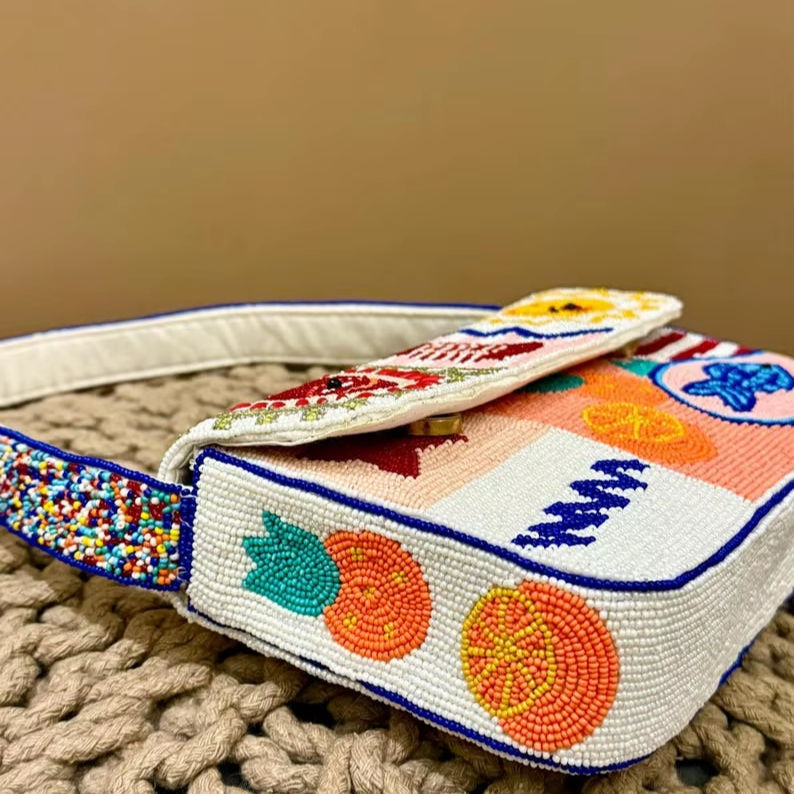 กระเป๋าคลัทช์งานฝีมือสไตล์โบฮีเมียนวินเทจประดับลูกปัด พร้อมกระดุมปิด ดีไซน์หรูหราสำหรับงานกลางคืน เหมาะสำหรับผู้หญิง มีจำหน่ายราคาส่ง