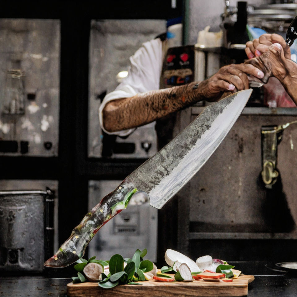 มีดทำครัวเหล็กกล้าคาร์บอนทำมือ ขนาด 8 นิ้ว คมพิเศษ ใช้ได้ทั้งมือซ้ายและขวา ด้ามเรซิ่น