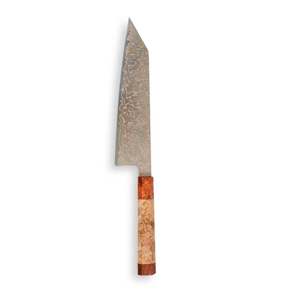 มีดเชฟเหล็กดามัสกัสทองแดงทำมือพร้อมด้ามไม้ธรรมชาติ สำหรับการทำอาหารระดับมืออาชีพในครัวและร้านอาหาร