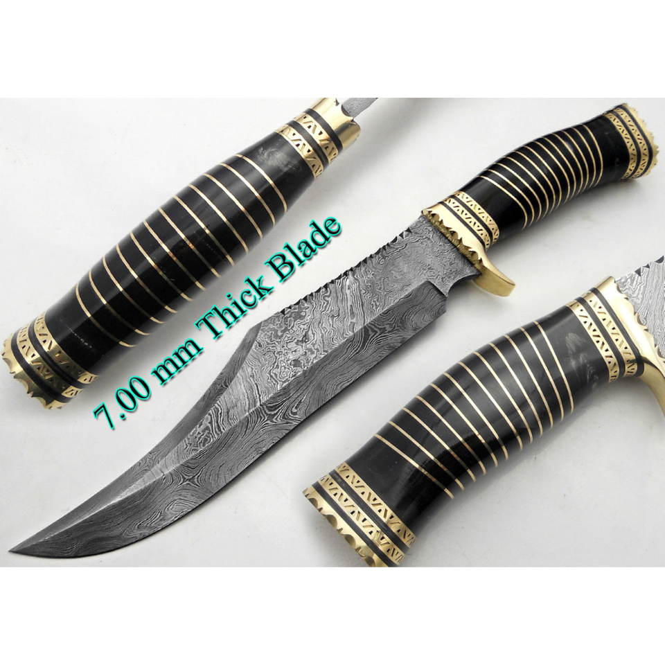 มีดล่าสัตว์เหล็ก D2ทำมือสั่งทำพร้อมด้ามจับแตรมีดโบวี่ขัดสูงพร้อมปลอกหนัง