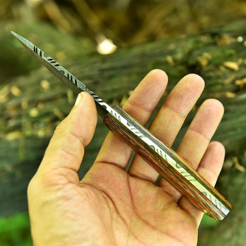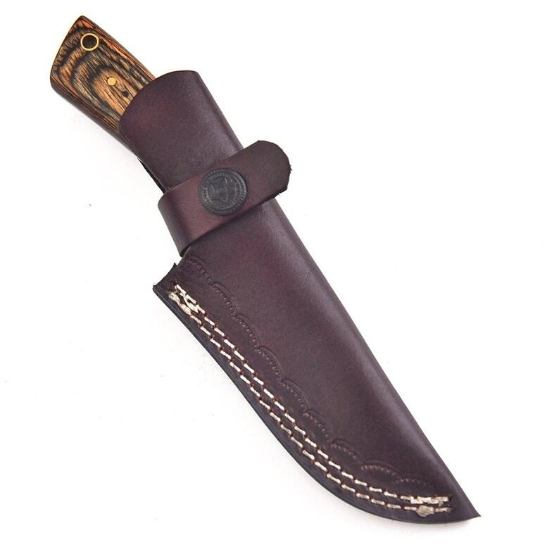 มีดล่าสัตว์ทำมือเหล็กดามัสกัส ด้ามไม้ ปลอกหนัง | มีดเอาตัวรอดสำหรับตั้งแคมป์กลางแจ้งแบบ OEM