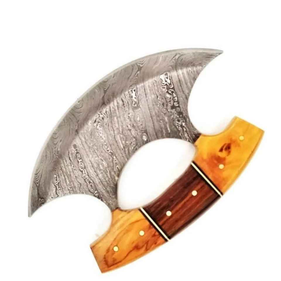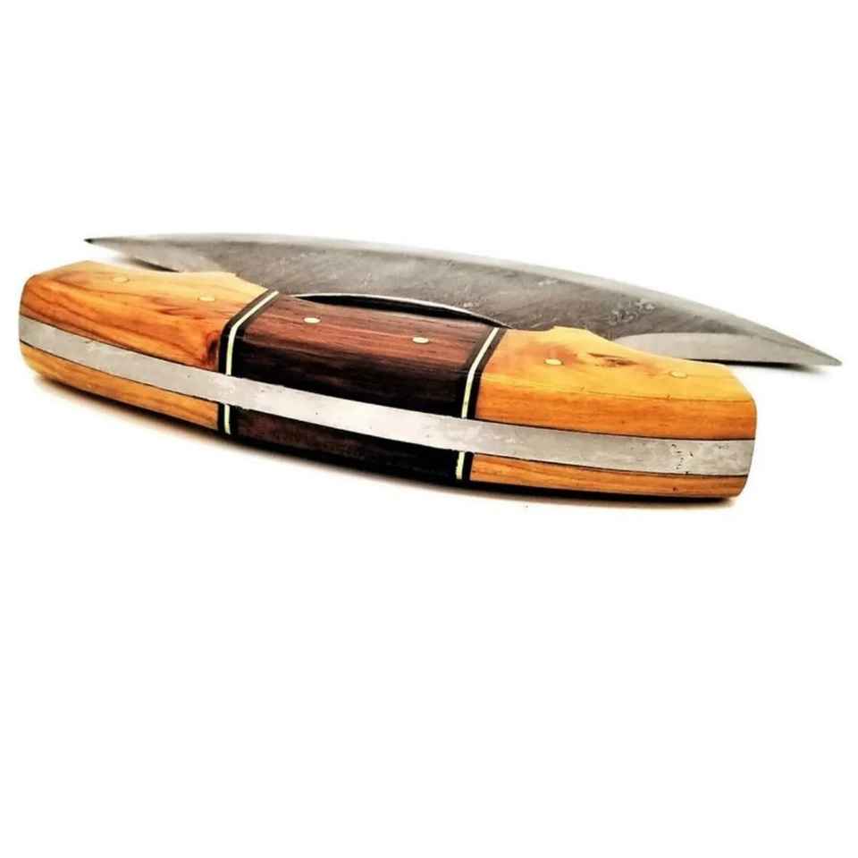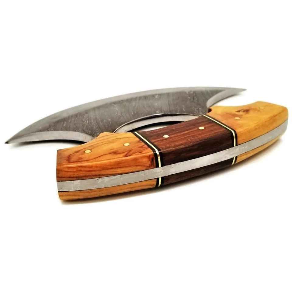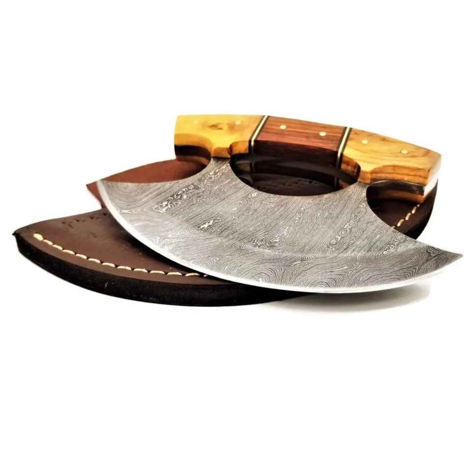มีดหั่นขนมปังดามัสกัสเชฟ Ulu มีดเชฟทำมือด้ามไม้มะกอกมีดทำครัวพร้อมปลอกหนังงานตามสั่ง