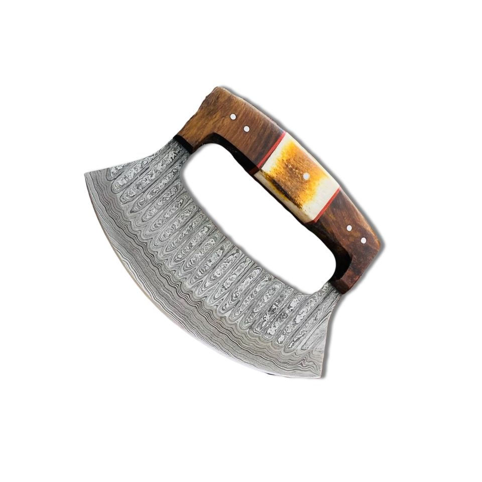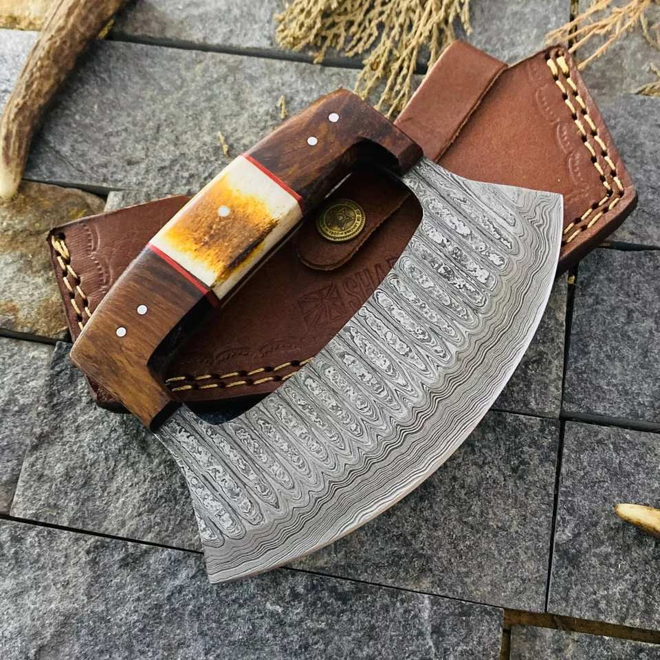 มีดเหล็กดามัสกัสใบมีดอูลูด้ามไม้ทำด้วยมือดีไซน์ใหม่อเนกประสงค์มีดกระเป๋า EDC