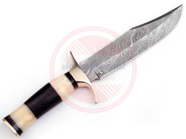 มีดโบวีเหล็กดามัสกัสทำมือใช้สำหรับตั้งแคมป์