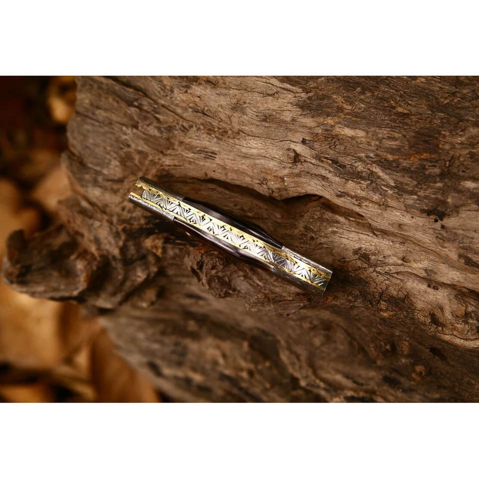 กระเป๋ามีดพับเหล็กดามัสกัสพับได้ใบมีด3นิ้วทำด้วยมือเคสหนังสำหรับตั้งแคมป์ DIY งานตามสั่ง