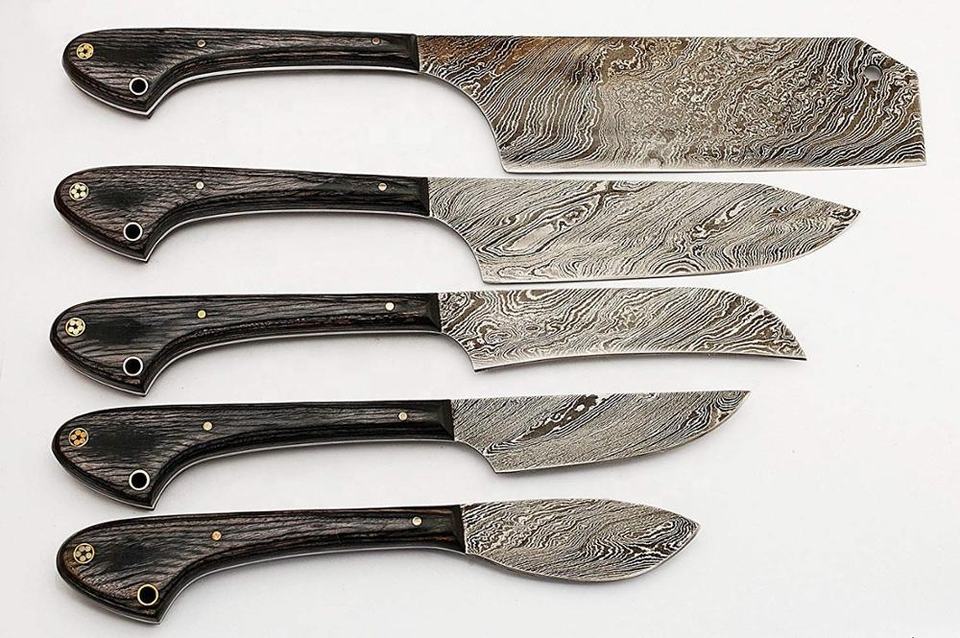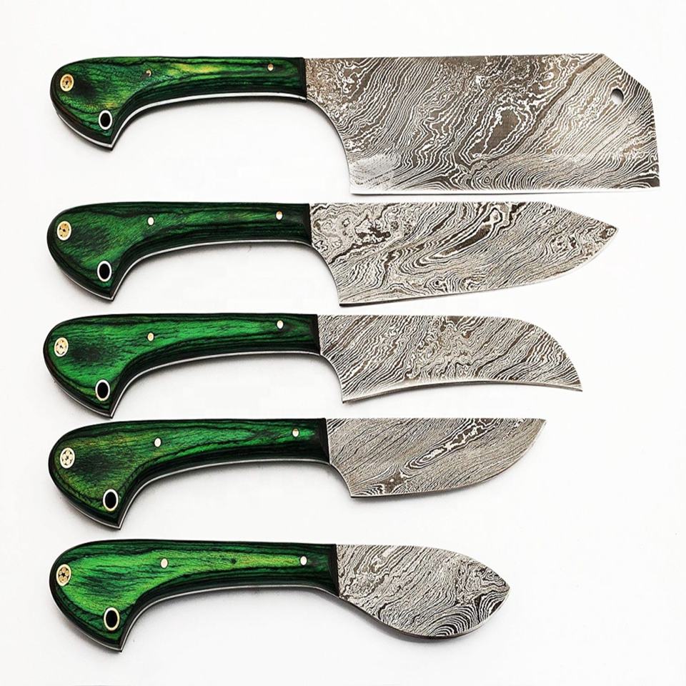 มีดดามัสกัสเหล็กสำหรับใช้ในครัวกลางแจ้งทำด้วยมือมีดทำครัวสแตนเลสใช้งานได้หลากหลายด้ามมีด DIY งานตามสั่ง