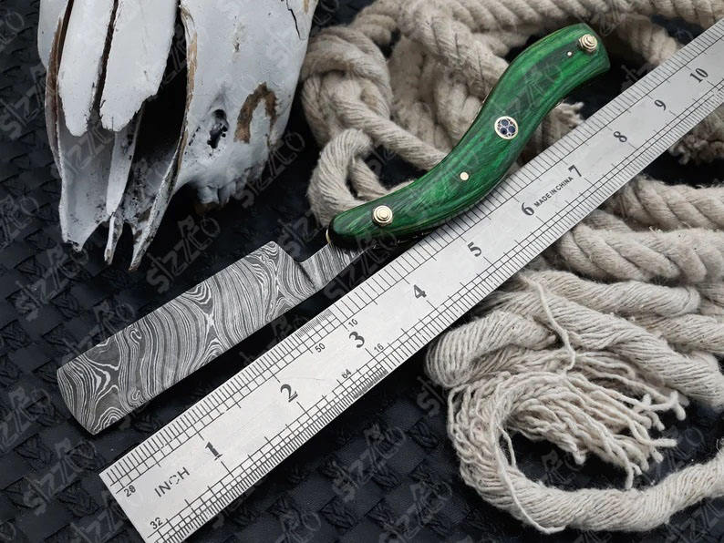 เครื่องโกนหนวดเหล็กดามัสกัสแบบทำด้วยมือด้ามจับไม้ด้ามจับที่สมบูรณ์แบบปลอกหนังฟรีเหมาะเป็นของขวัญสำหรับเขา