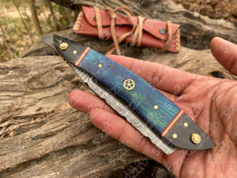 เครื่องโกนหนวดเหล็กดามัสกัสแบบทำด้วยมือด้ามจับไม้ด้ามจับที่สมบูรณ์แบบปลอกหนังฟรีเหมาะเป็นของขวัญสำหรับเขา