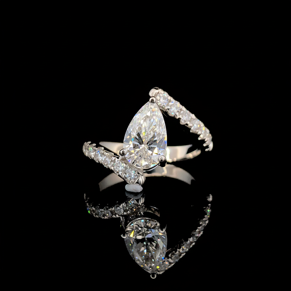 แหวนหมั้นเพชรแบบตัดรูปลูกแพร์สีเงินแท้แฮนด์เมดแหวนหมั้นแบบคลาสสิกออกแบบได้ตามต้องการสำหรับงานแต่งงานงานปาร์ตี้