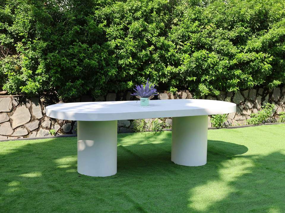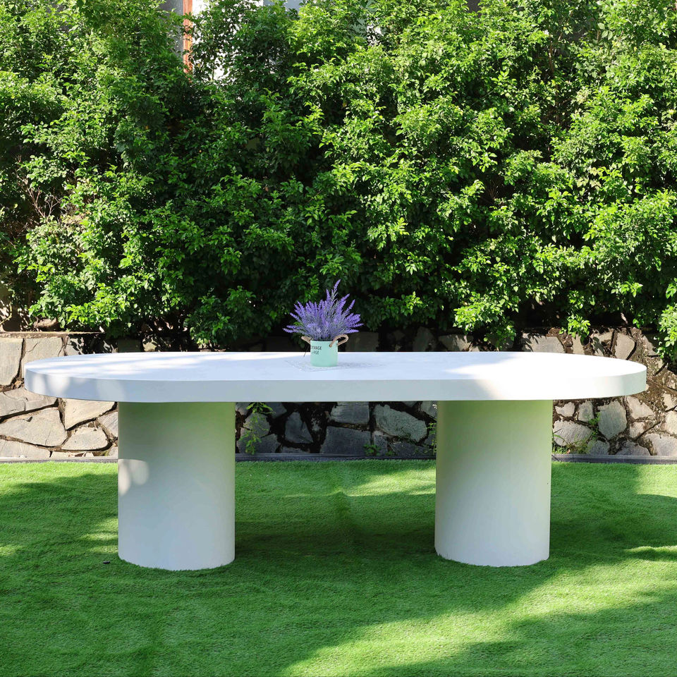 โต๊ะรับประทานอาหารทรงวงรีสีขาว ทำมือ ทนทาน ทันสมัย เรียบง่าย หรูหรา ผลิตจากคอนกรีต GFRC เหมาะสำหรับบ้าน ร้านอาหาร โรงแรม และวิลล่า