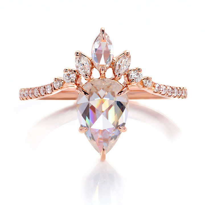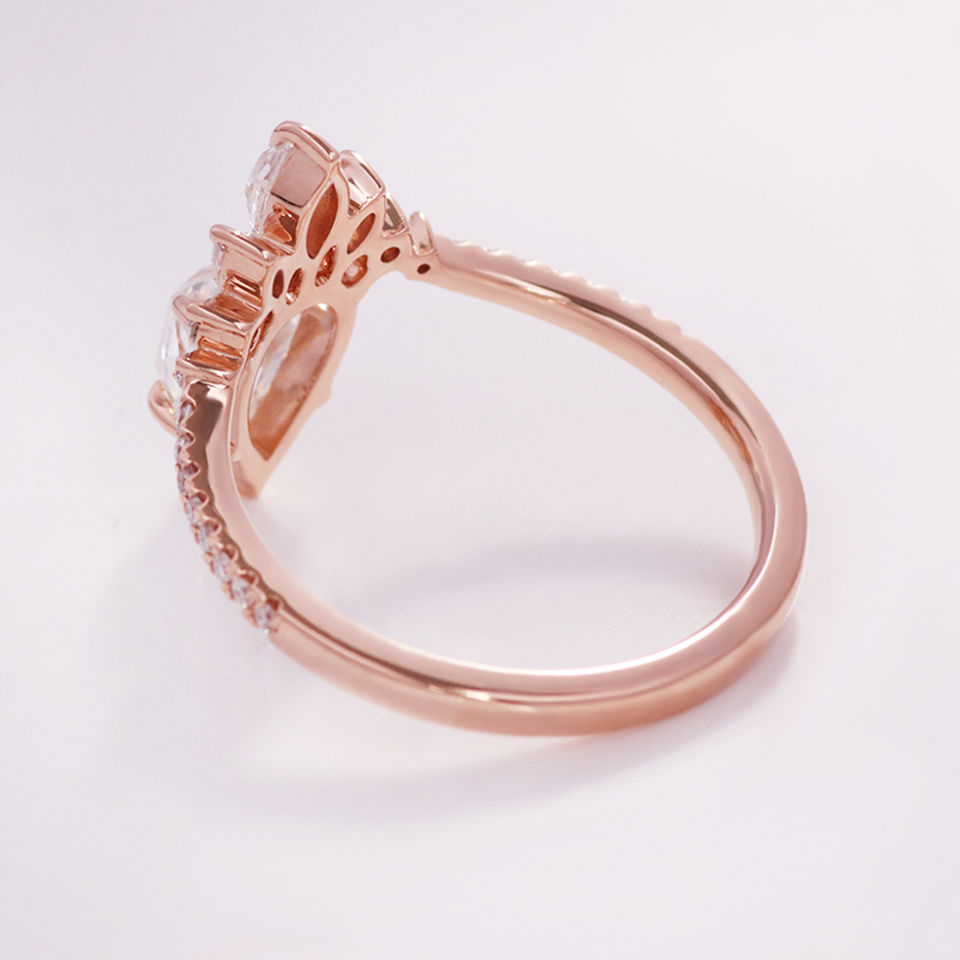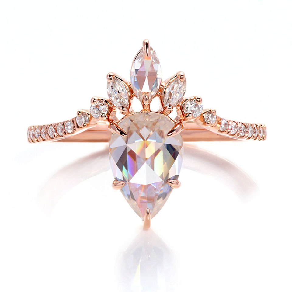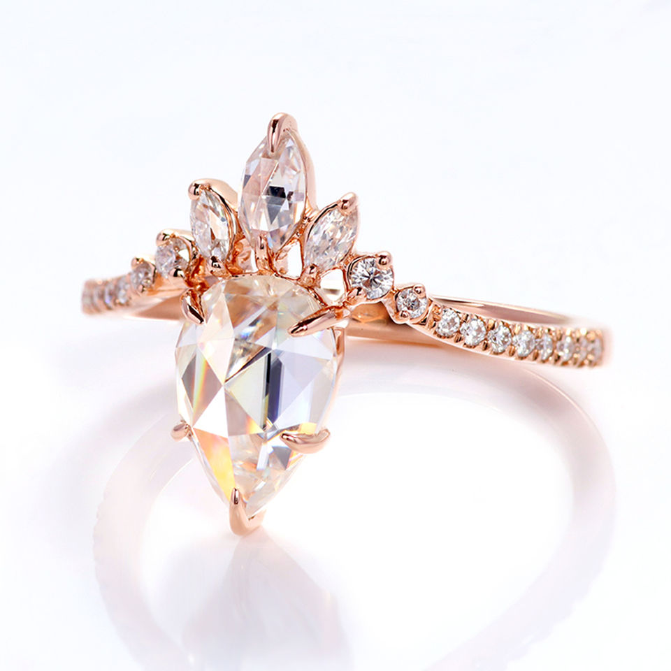 แหวนเพชรโมอิสซาไนต์ทรงลูกแพร์ 2 กะรัต งานแฮนด์เมดสุดหรู สำหรับผู้หญิง ทองคำชมพู 14K เหมาะสำหรับงานหมั้น งานครบรอบ และงานแต่งงาน