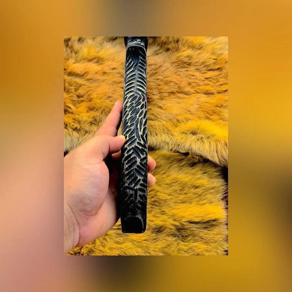 เครื่องตัดพิซซ่าทำจากเหล็กกล้าคาร์บอนสูงทำด้วยมือปลอกหนังละเอียดด้ามจับไม้ไวกิ้งทำจากเหล็กกล้าคาร์บอนสูงงานตามสั่ง
