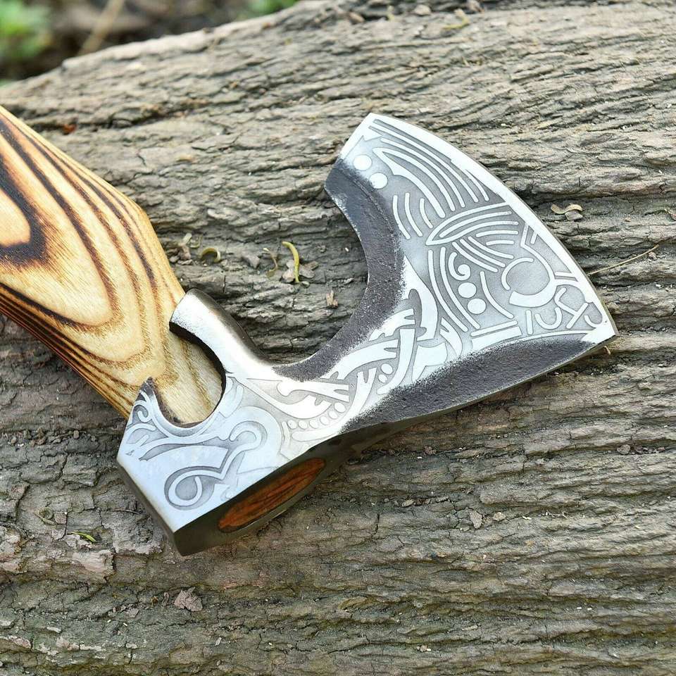 ขวานไวกิ้งทำมือเหล็กกล้าคาร์บอนสูง ด้ามเหล็กเกรดอุตสาหกรรม ปลอกหนัง สำหรับตั้งแคมป์ ใช้ในชีวิตประจำวัน และกิจกรรมกลางแจ้ง