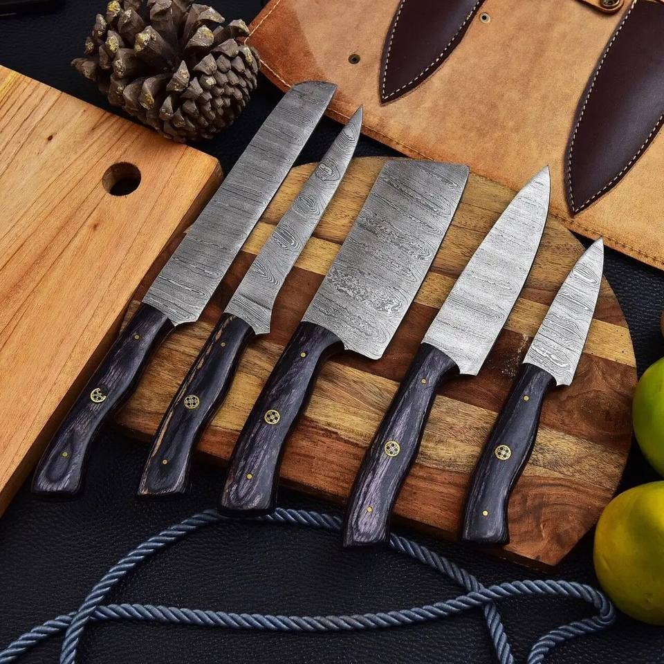 ชุดมีดทำครัวสแตนเลสมีดฟอร์จด้วยมือคุณภาพสูงงานตามสั่งมีดฟอสเฟตพร้อมกระเป๋าหนัง