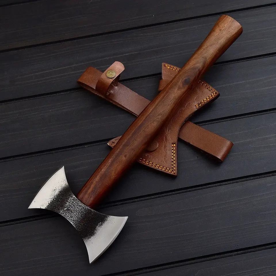 ขวานเหล็กคาร์บอนปลอมพร้อมปลอกหนังทำด้วยมือคุณภาพสูงของขวัญสำหรับพ่อตามสั่งตั้งแคมป์และล่าสัตว์