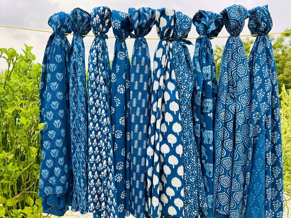 ผ้าโสร่งผ้าฝ้ายแท้สำหรับชายหาดวันหยุดหรือสปาผ้า100% พิมพ์ลายดอกไม้สีครามแบบกำหนดเองได้1ชิ้น