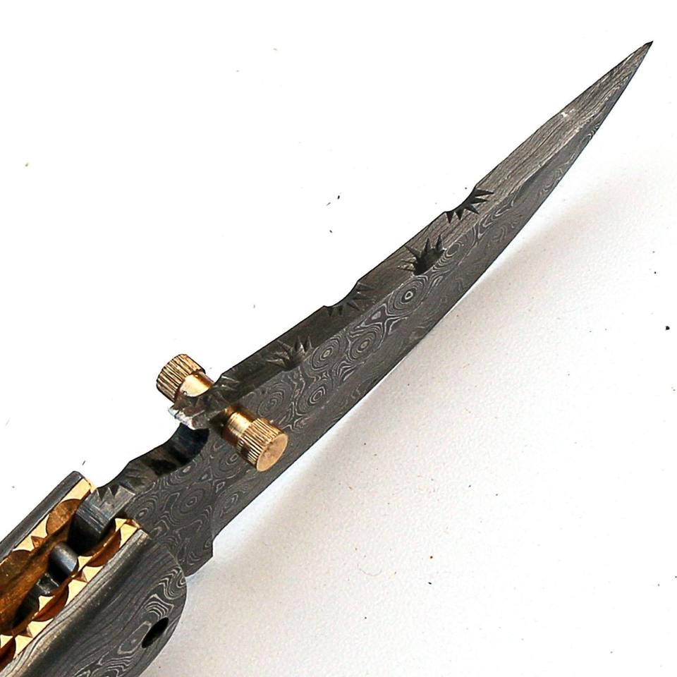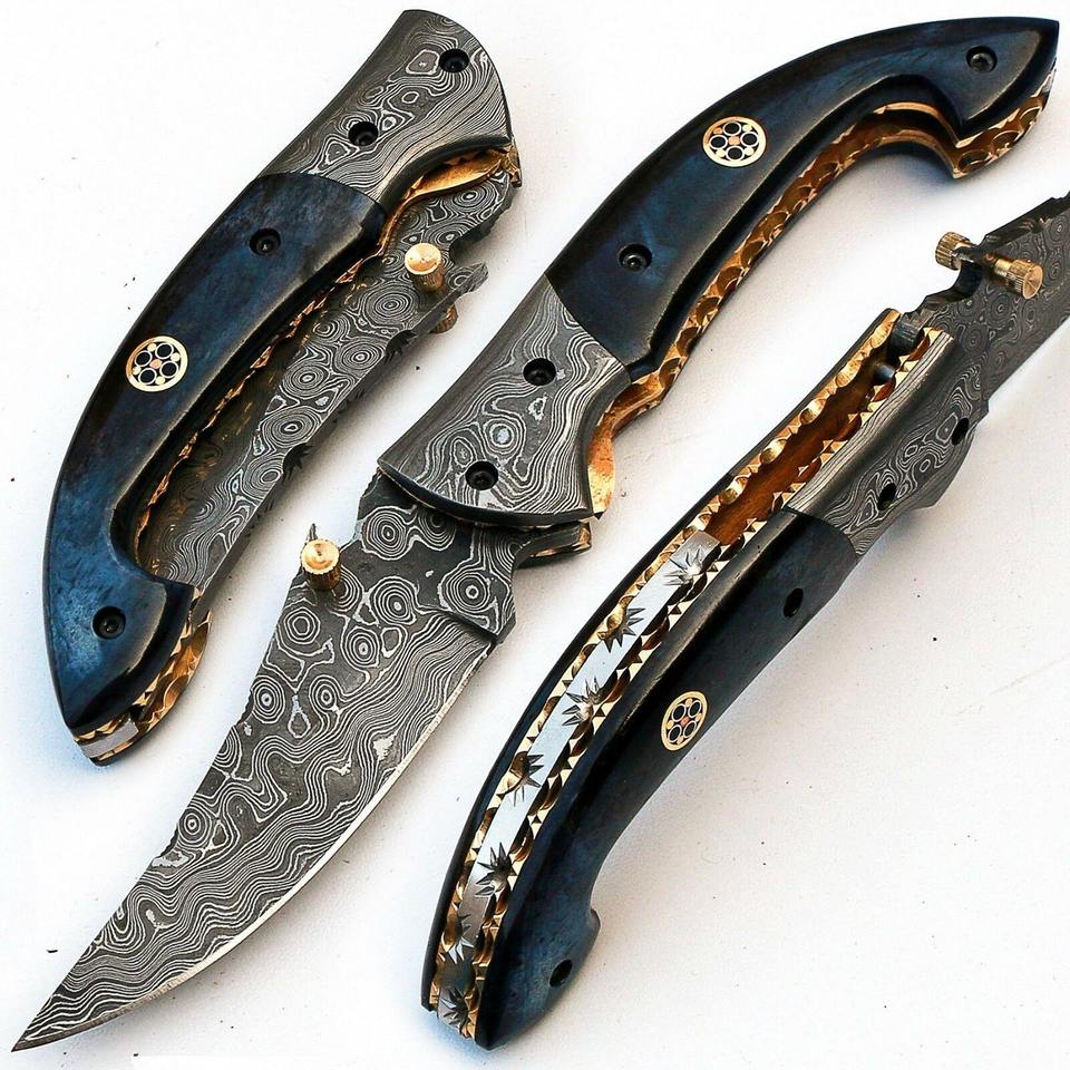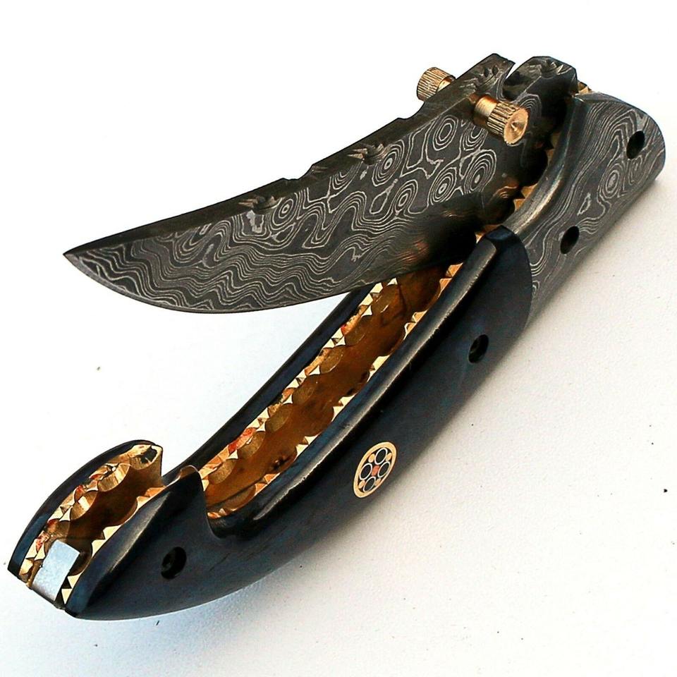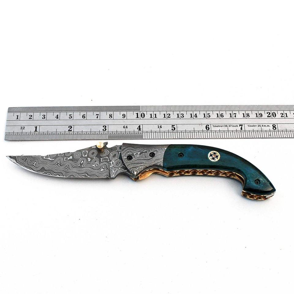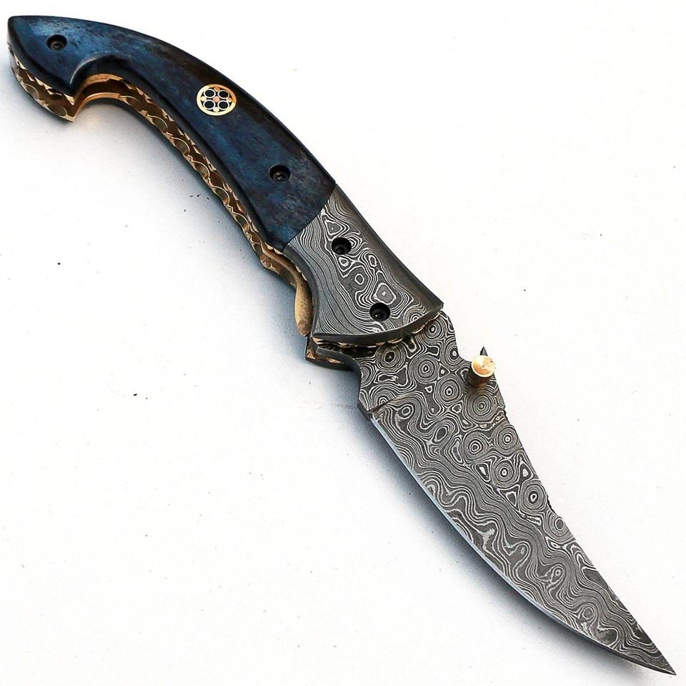 มีดพับพกพาเหล็กดามัสกัสเกรดอุตสาหกรรม ผลิตด้วยมือ รองรับ OEM ด้ามไม้/กระดูก/เรซิ่น ผลิตในปากีสถาน