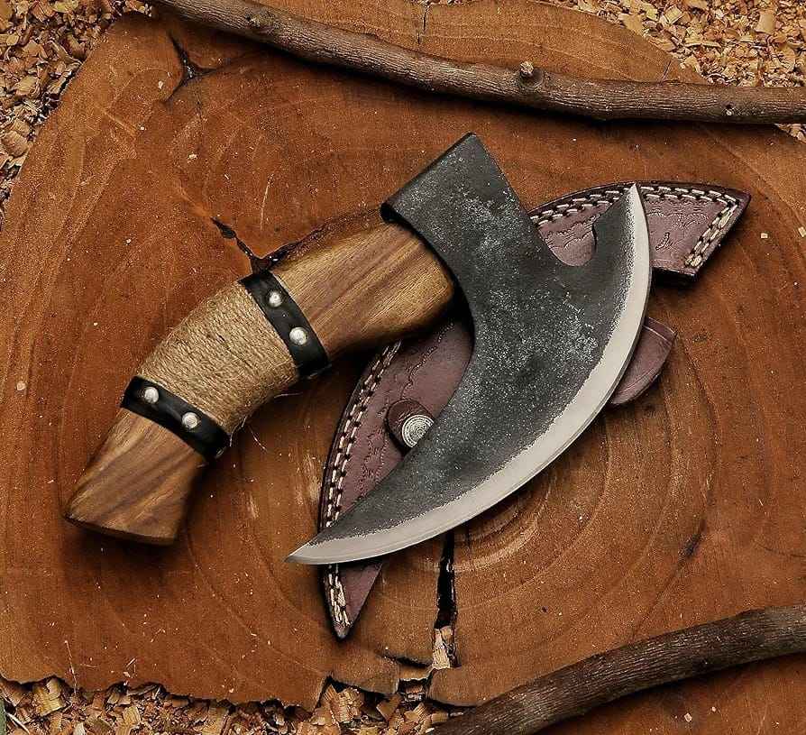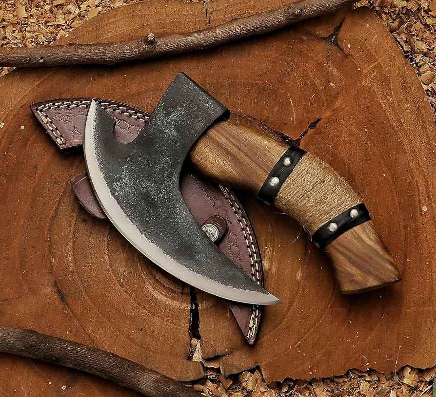 มีดตัดพิซซ่าแบบวิกิ้ง ทำมือ คุณภาพอุตสาหกรรม เหล็กกล้าคาร์บอนสูง พร้อมปลอกหนังอย่างดี ตีขึ้นรูปด้วยมือ