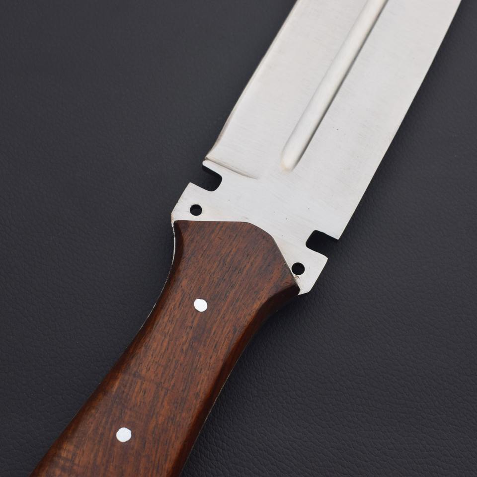 มีดโบวี่ทำมือสำหรับเอาตัวรอดกลางแจ้ง ใบมีดเหล็กกล้าไร้สนิมคมกริบ ทนทาน ด้ามไม้ คุณภาพ DIY เกรด OEM