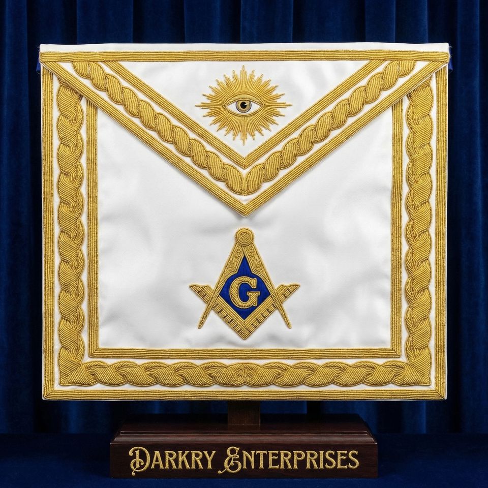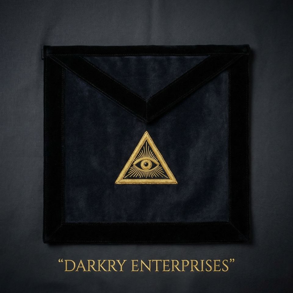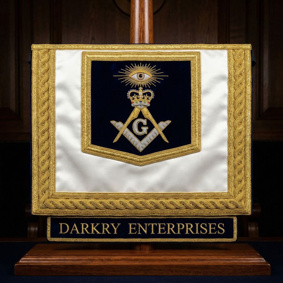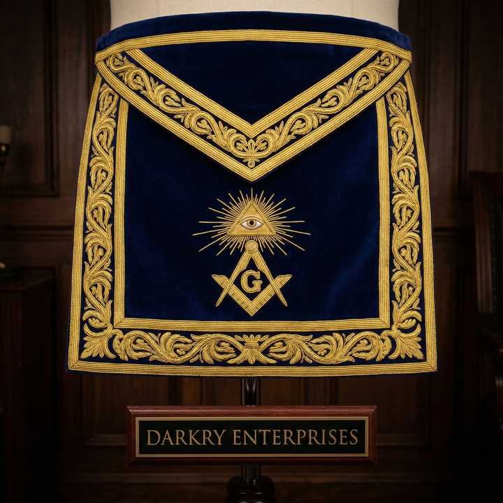 ผ้ากันเปื้อนพิธีกรรมเมสันทำมือสั่งทำพิเศษ สีน้ำเงินเข้ม กำมะหยี่ ปักดิ้นทอง ลายดวงตาที่มองเห็นทุกสิ่ง พร้อมเข็มทิศสี่เหลี่ยม