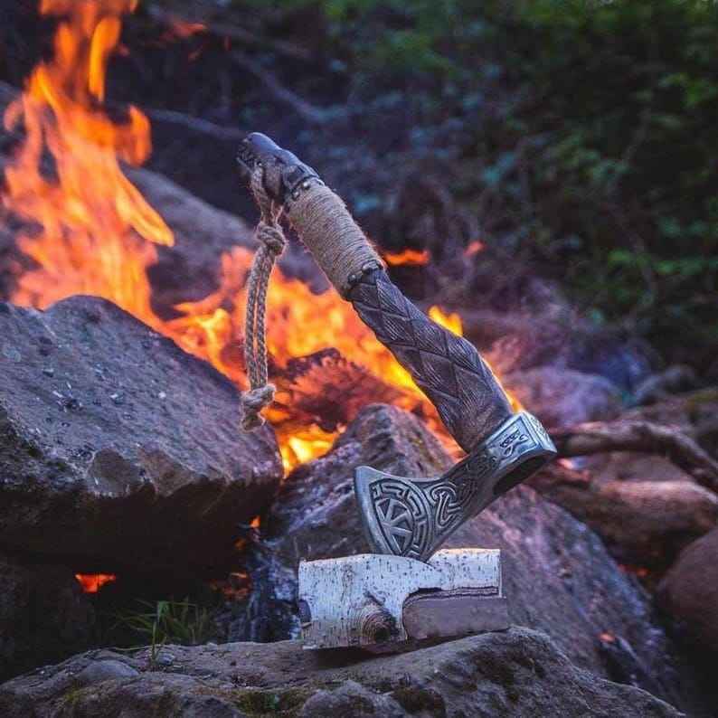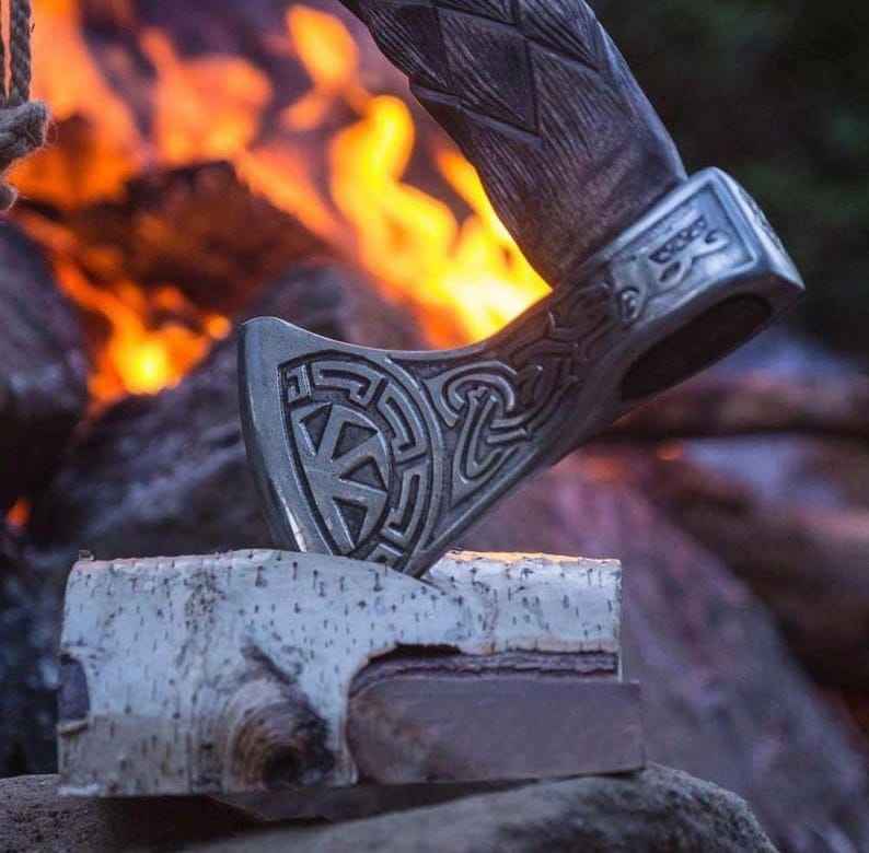 ขวานไวกิ้งด้ามไม้แกะสลัก