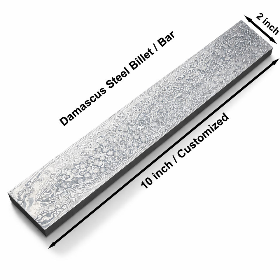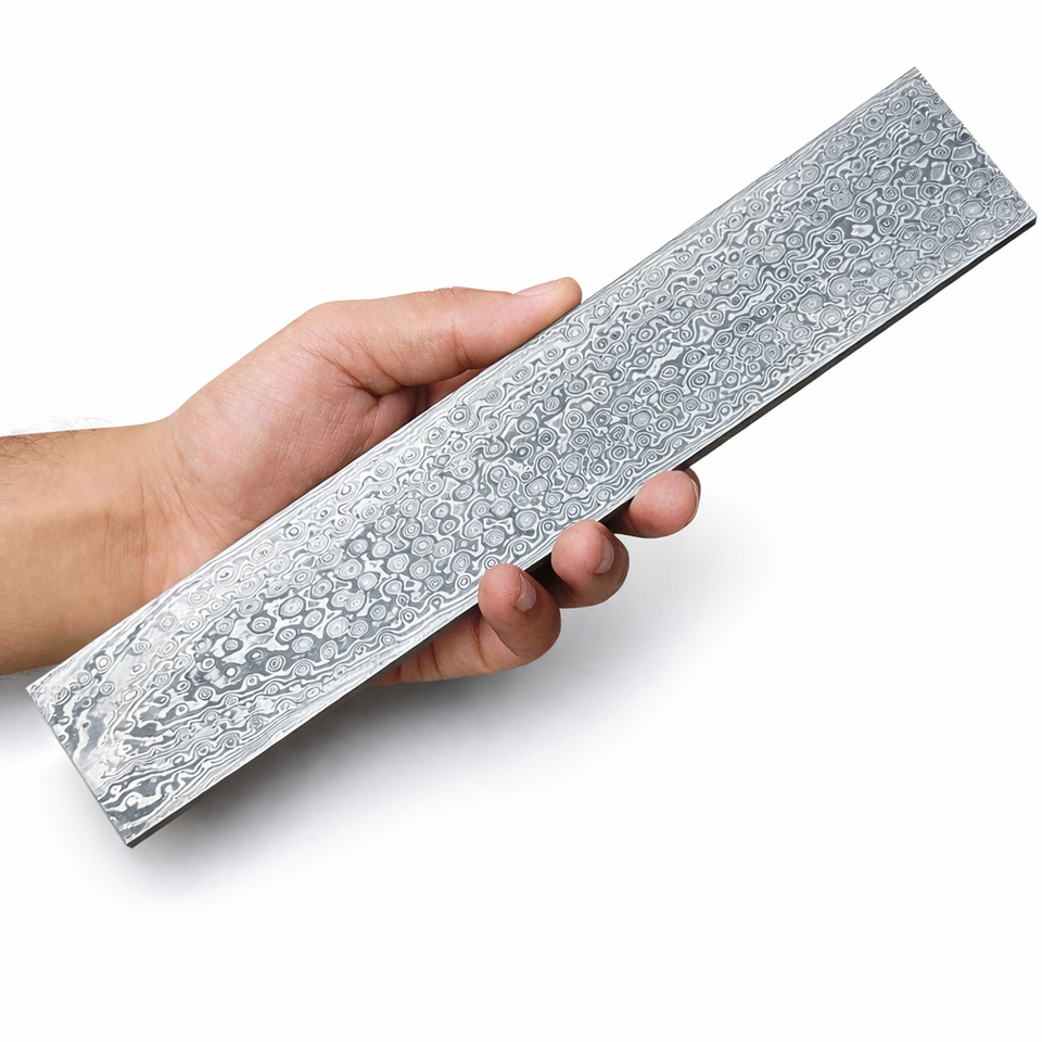 เหล็กดามัสกัสลายหยดน้ำแบบทำมือ ขนาด 10x2 นิ้ว สำหรับทำมีดและงานฝีมือ