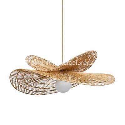 โคมไฟหวายแขวนเพดานทำด้วยมือแบบกำหนดเองโป๊ะหวายธรรมชาติและหรูหราสำหรับตกแต่งบ้านที่ไม่เหมือนใคร