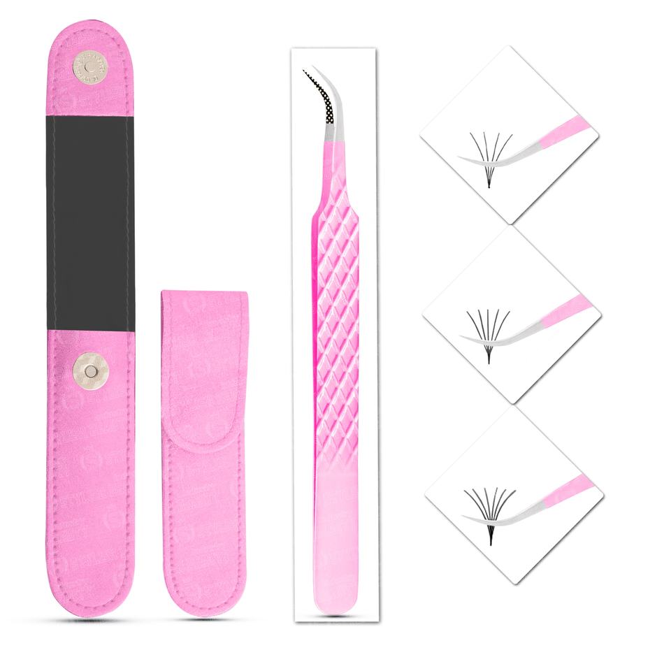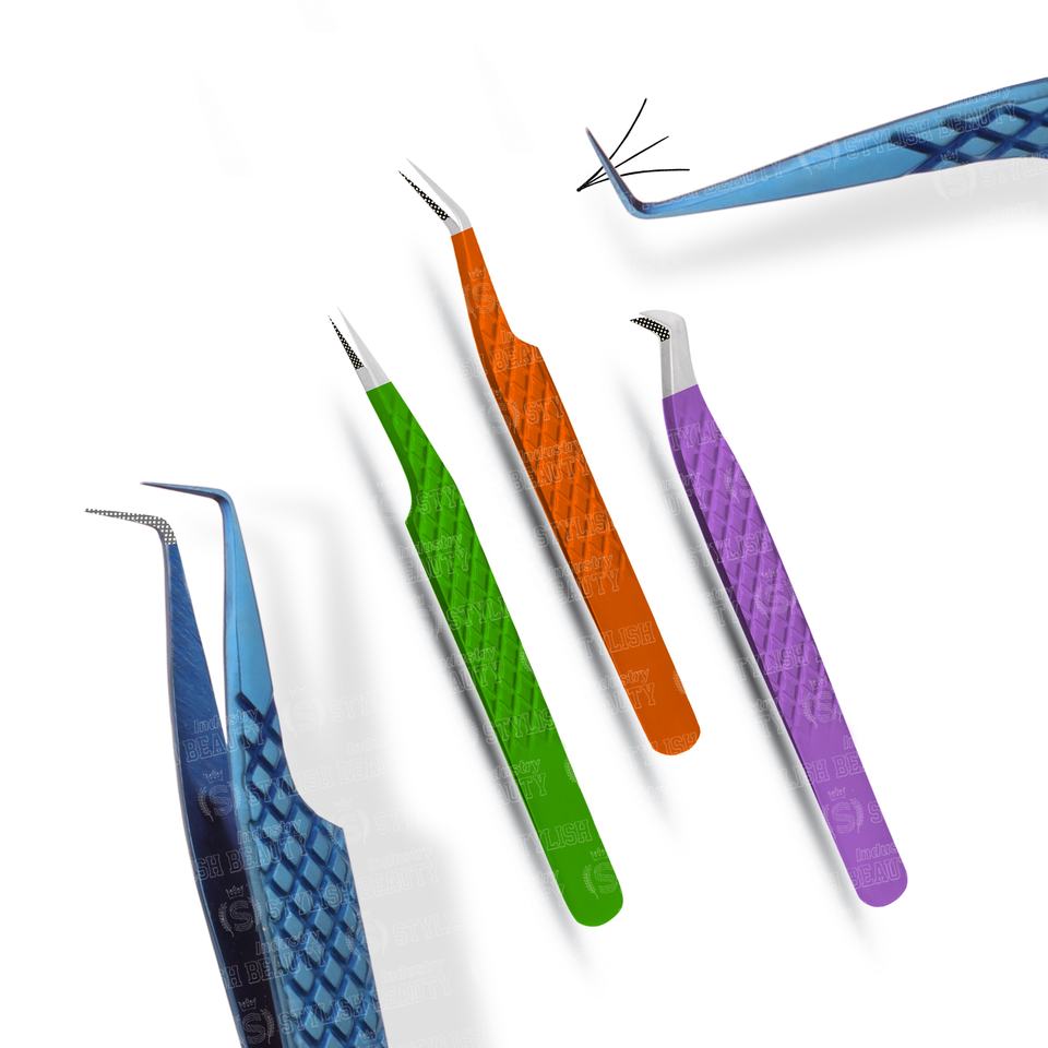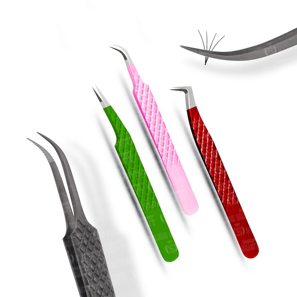 แหนบต่อขนตาทำจากสแตนเลสงานทำมือดีไซน์แบบรอยบากกึ่งคู่พร้อมปลายแหลมเบาแรงดึงเรียบ