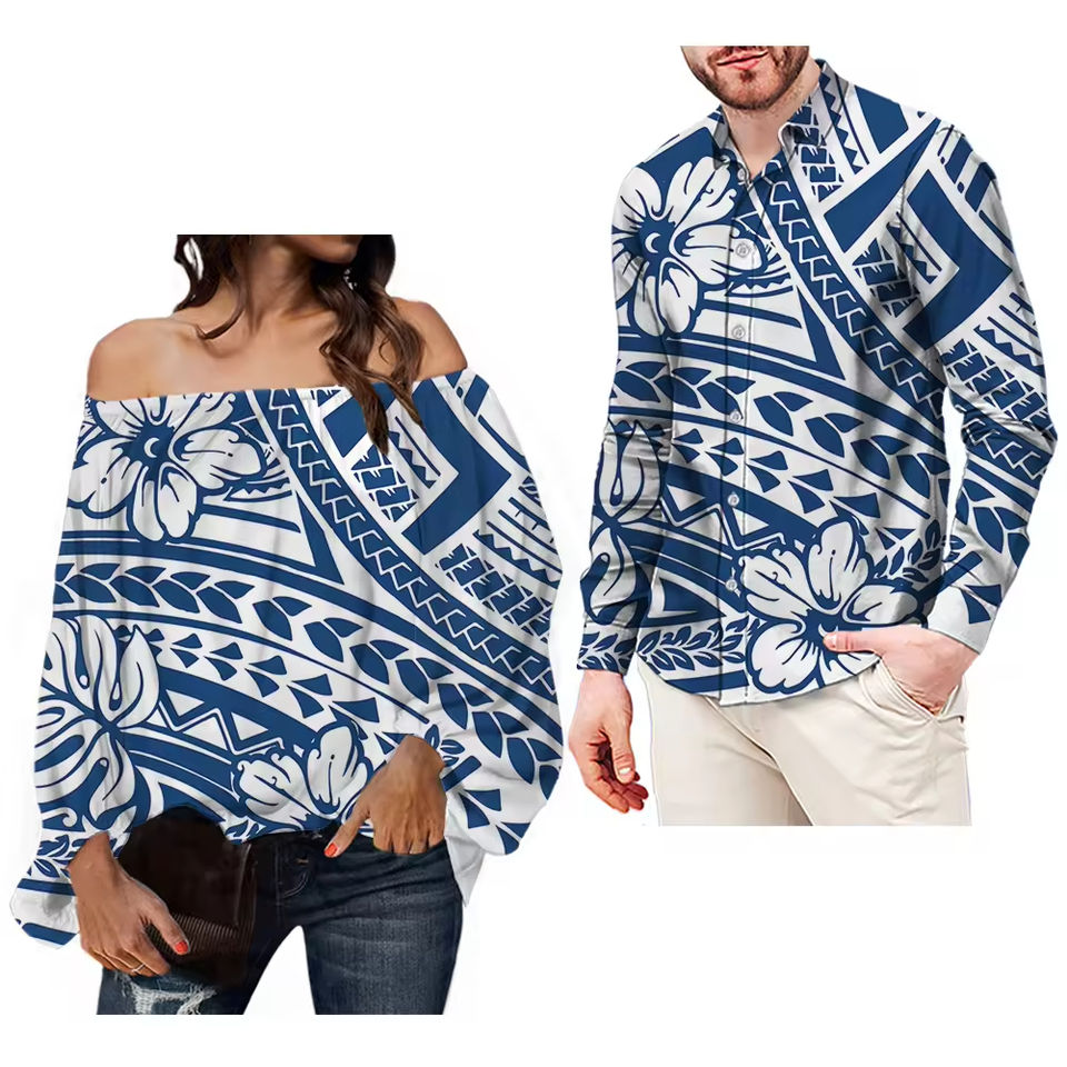 เสื้อเชิ้ตผู้หญิงลายสักแบบโพลีนีเชียนฮาวาย ดีไซน์ลายชนเผ่า เสื้อชีฟองลำลอง เสื้อคู่แขนยาว