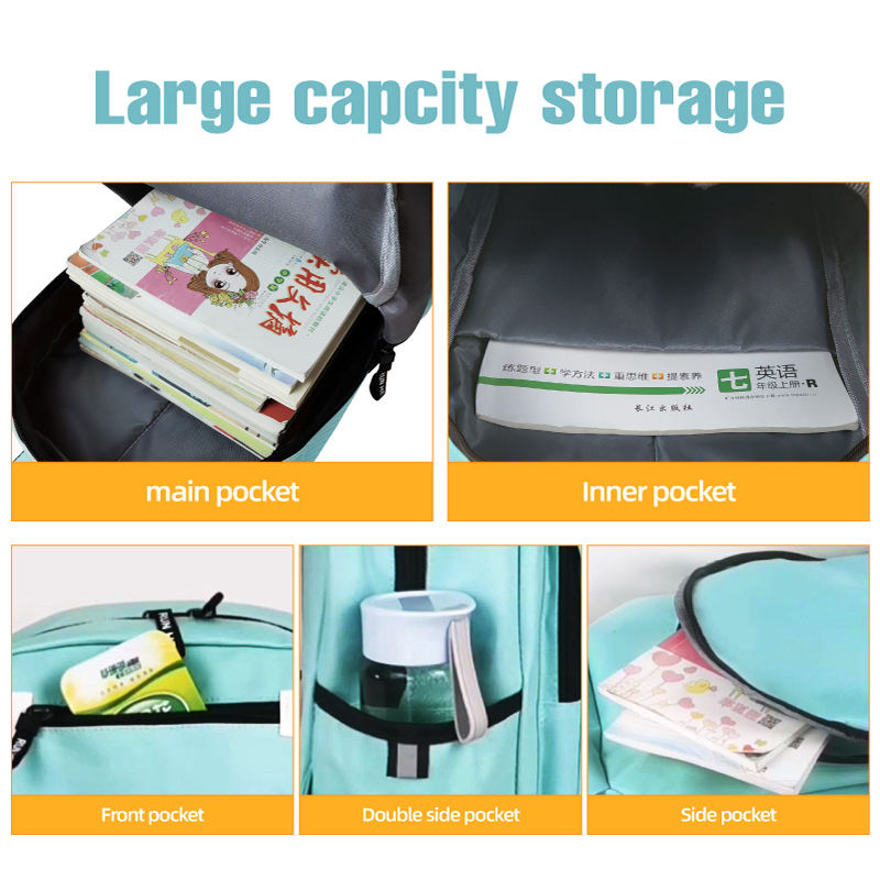 Custom Heat Transfer Student Backpack Schoolbag Kids Bag Large Space Two Side Pockets Adjustable Belt School Bag Printing logo