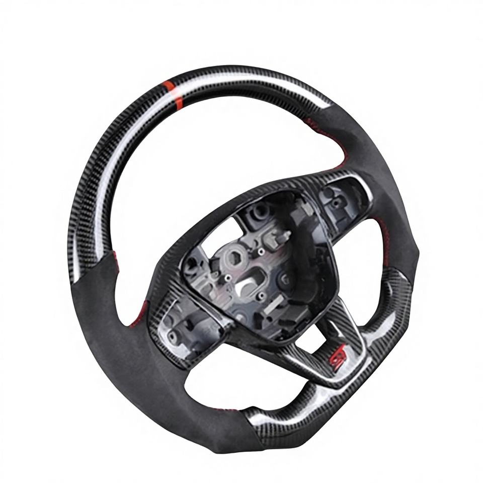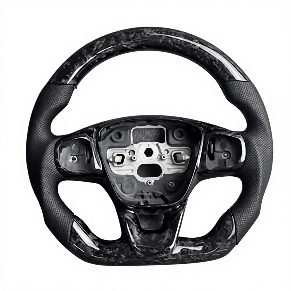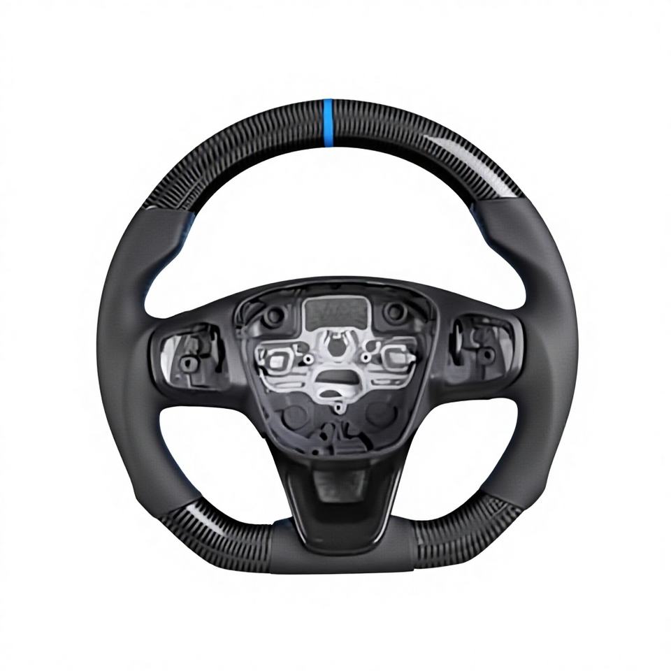 พวงมาลัยกีฬาหุ้มหนังคาร์บอนฟอร์จ พร้อมจอ LED แสดงผลแบบปรับอุณหภูมิได้ สำหรับรถฟอร์ด ฟิวชั่น เฟียสต้า เอ็กซ์พลอเรอร์ โฟกัส Mk3/Mk2/Mk7/S550