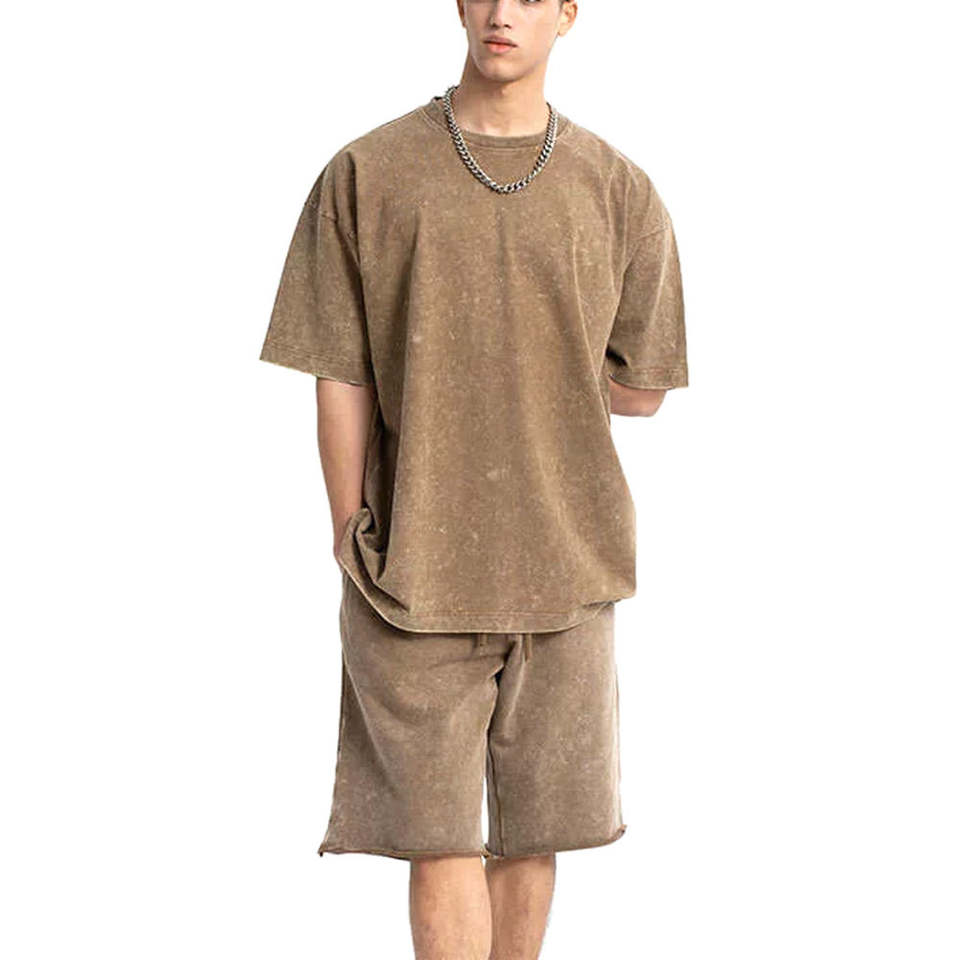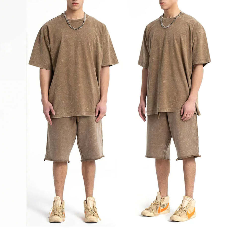 Custom Heavy Cotton Acid Wash oversize Fit Size t Shirts 2 Piece Short Set Men Short Sleeve Summer Wear t Shirts Short Sets