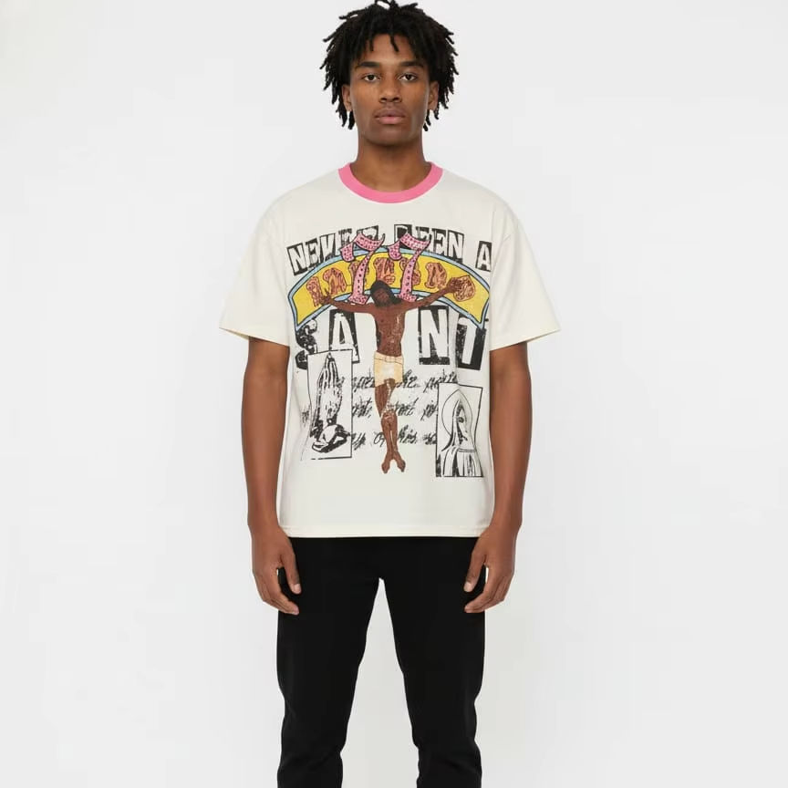 เสื้อยืดพิมพ์ลายสำหรับผู้ชายเสื้อยืดพิมพ์ลาย DTG ผ้าฝ้ายขนาดใหญ่ออกแบบได้ตามต้องการ