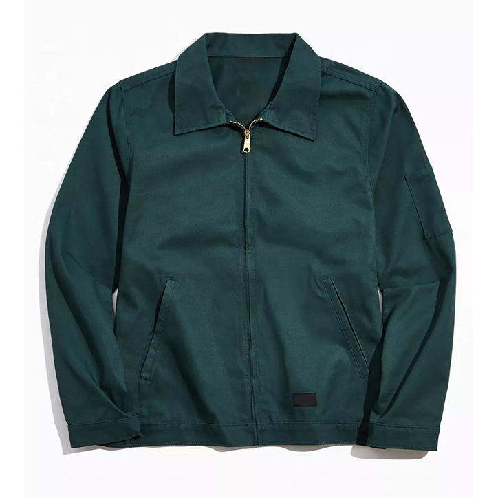 แจ็กเก็ตใส่ทำงานผ้าฝ้ายหนาสำหรับผู้ชายมีคอเสื้อพับลงมีซิปด้านหน้าเป็นโลหะสำหรับฤดูใบไม้ผลิงานตามสั่ง