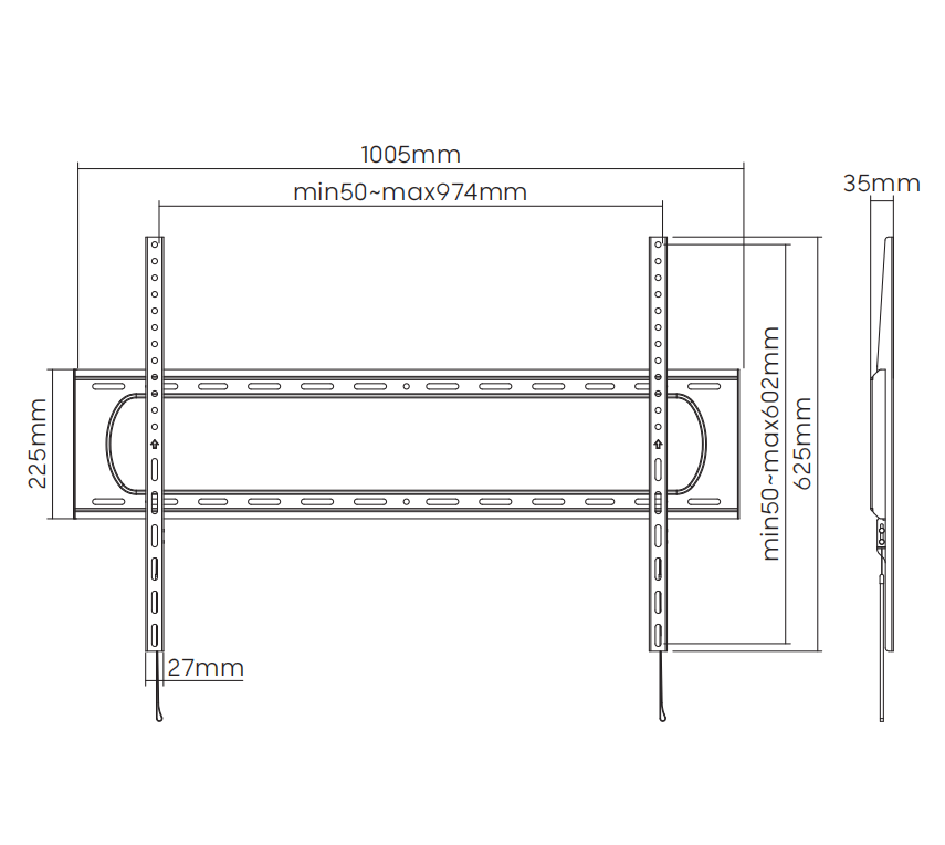 ขายึดทีวีติดผนังแบบยึดติดแน่น ทำจากเหล็กแผ่นรีดเย็น รับน้ำหนักได้ 120 กก. รองรับ VESA 900x600 สำหรับหน้าจอขนาด 60 ถึง 120 นิ้ว