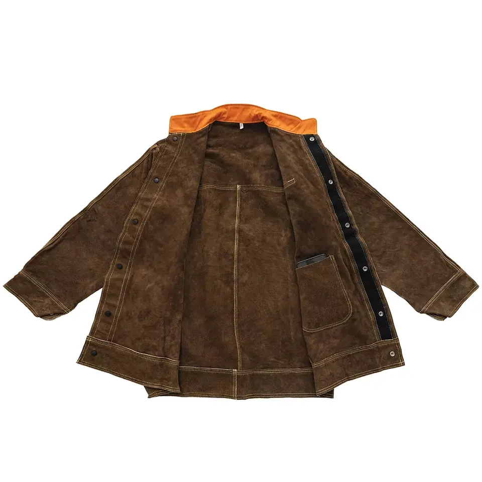 เสื้อแจ็คเก็ตเชื่อมงานหนักแบบกำหนดเอง ผ้าโพลีเอสเตอร์ ทนไฟ ป้องกันไฟฟ้าสถิต ป้องกันความร้อน แขนยาว มีกระเป๋า สำหรับช่างเชื่อม