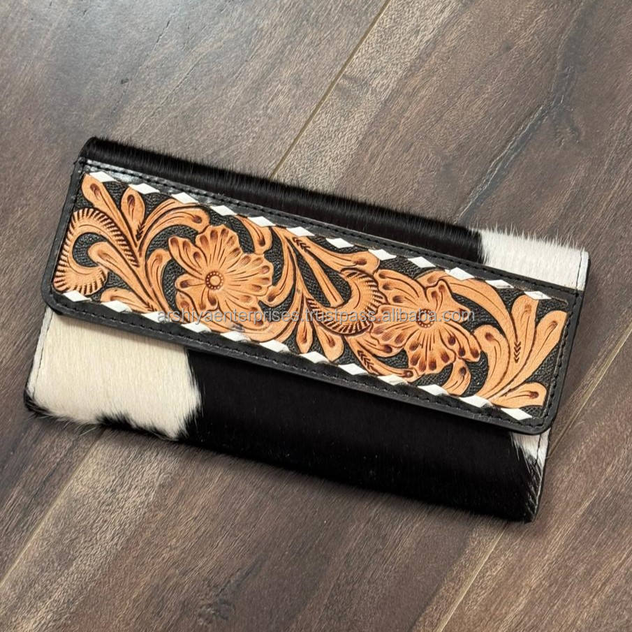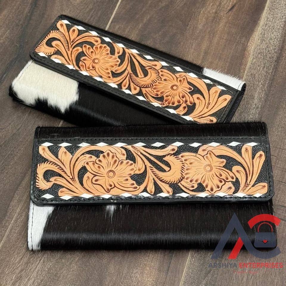 Hand Tooled Cowhide Leather Trifold Women Wallet