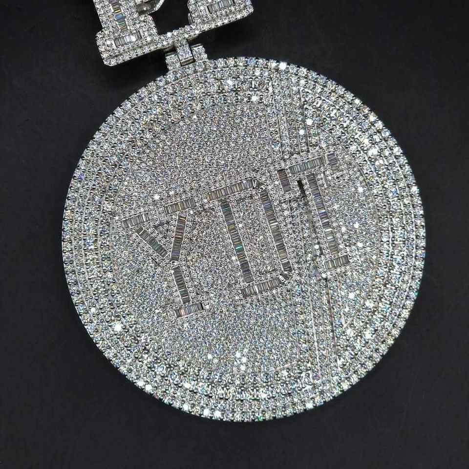 จี้ห้อยคอแบบฮิปฮอปชุบทองคำขาว 925 ประดับเพชรโมอิสซาไนต์ ดีไซน์ตัวอักษรปรับแต่งได้ตามต้องการ