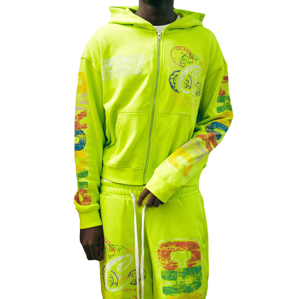 ผู้ผลิตเสื้อฮู้ดดี้ทรงครอป บ็อกซี่ โอเวอร์ไซส์ ผ้าคอตตอนหนานุ่ม สไตล์สตรีทแวร์ ลุคทำเก่า ซิปหน้า ล้างสีแบบแอซิดวอช