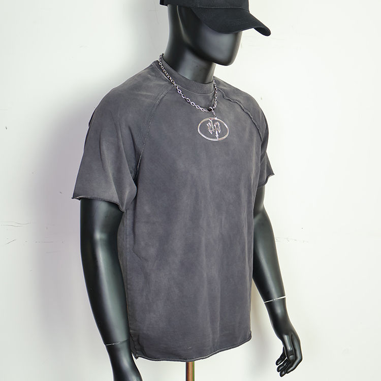เสื้อยืดโอเวอร์ไซส์ทรงหลวม คอตตอน 100% หนักพิเศษ สไตล์วินเทจ ย้อมสีแบบฟอกกรด น้ำหนัก 300 กรัม สำหรับผู้ชาย สตรีทแวร์