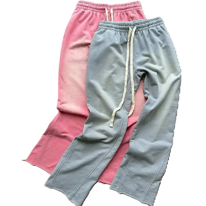 กางเกงจ็อกเกอร์ผ้าคอตตอนแบบผูกเชือกสไตล์วินเทจสำหรับผู้ชายกางเกงจ็อกเกอร์รุ่นน้ำหนัก100% กำหนดได้เองทรงหลวมขากว้างสำหรับผู้ชาย