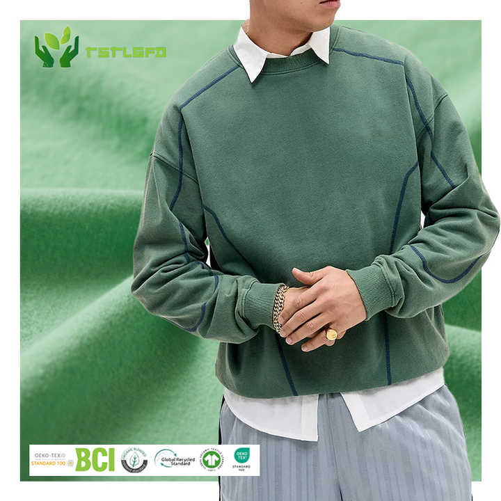 Custom Heavyweight 380GSM Men's Sweatshirt Green Fabric Hoodie with Embroidered Contract Stitch Baggy Oversize Design OEM Hoodie