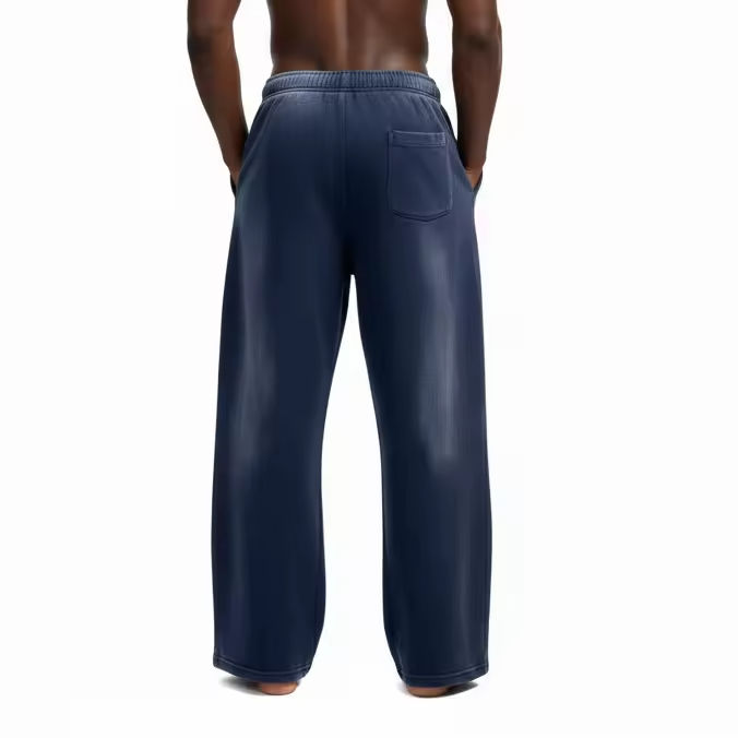 กางเกงจ็อกเกอร์ทรงขาบานผ้าฝ้ายฟลีซหนา 400 GSM ปักลายแบบกำหนดเอง เป็นมิตรกับสิ่งแวดล้อม สำหรับผู้ชาย ทรงขากว้างตรงหลวม