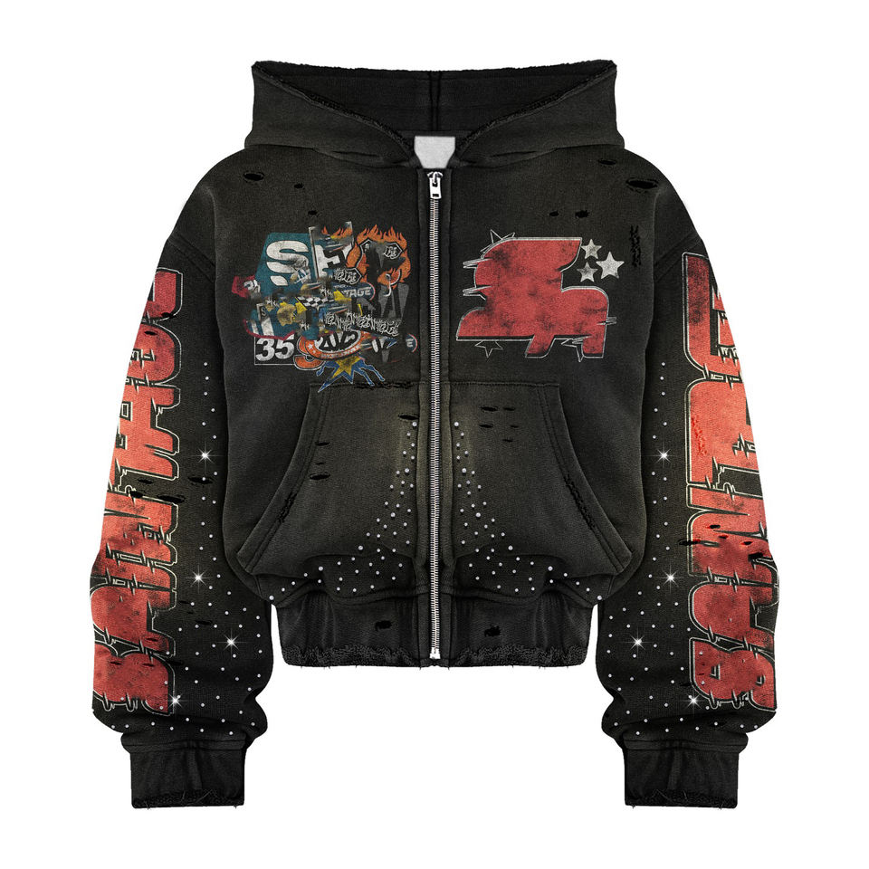 ชุดฮู้ดดี้ผ้าคอตตอน 100% หนัก 420 กรัม แบบสั่งทำพิเศษ พร้อมลายสกรีน ซิปโลหะ ลุคย้อมสีแบบดิสเทรส