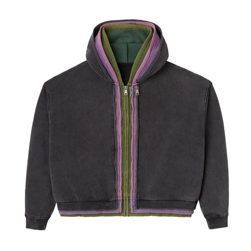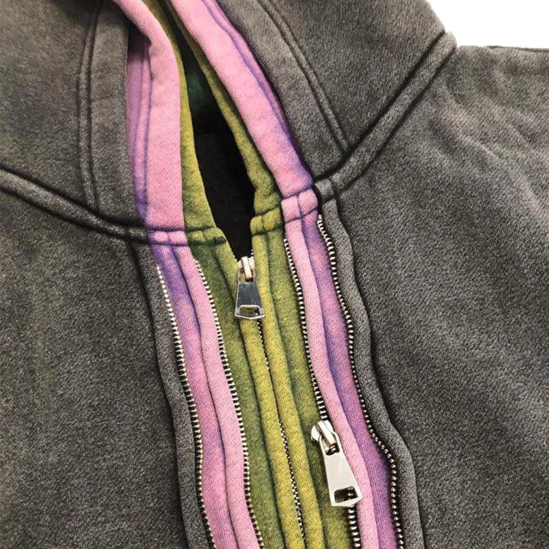 เสื้อฮู้ดซิปมีฮู้ดสามชั้นสำหรับผู้ชายกางเกงครอปแบบกรดซักได้ตามต้องการ