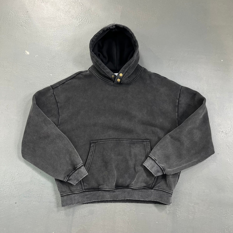 เสื้อฮู้ดดี้ผ้าฝ้ายทรงโอเวอร์ไซส์แบบหนาพิเศษ ล้างสีแบบแอซิด สำหรับผู้ชาย พิมพ์ลายหัวใจ ประดับคริสตัล ตะเข็บแบบ Reserve ทรงบ็อกซี่ ลุคทำเก่า ODM