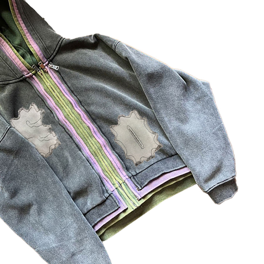 เสื้อฮู้ดซักกรดของผู้ชายเสื้อมีซิปสามชั้น100% ผ้าฝ้ายพิมพ์ดิจิตอลสีทึบคุณภาพสูงสำหรับฤดูหนาว